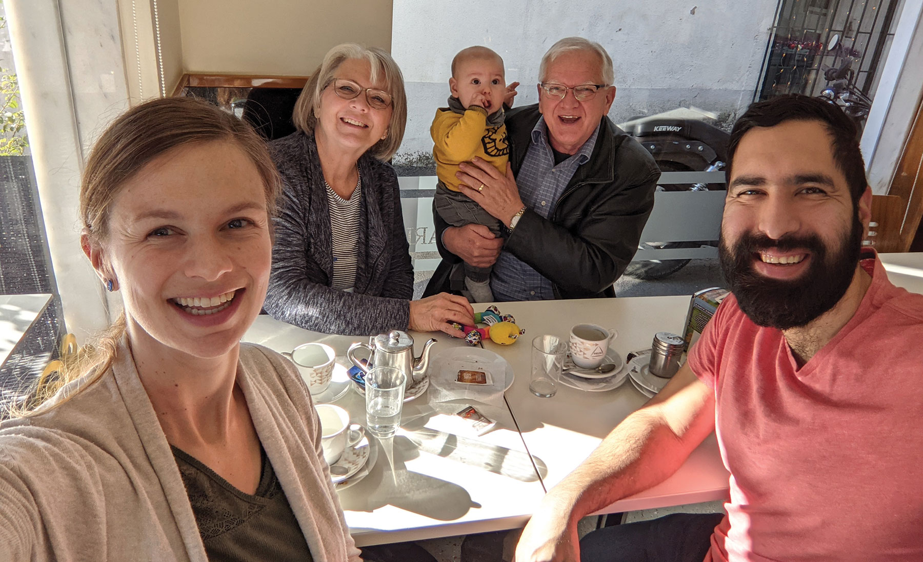 Jonathan and Joanna Pharazyn-Gutierrez are full-time global workers with Multiply in Lisbon, Portugal. They recently sat down with their newly retired coworkers, Otto and Marjorie Ekk, who have been serving in Portugal since 1988. In the photo above, Otto is holding Jonathan and Joanna’s firstborn child, Valin.
